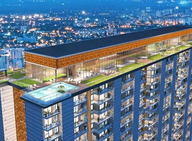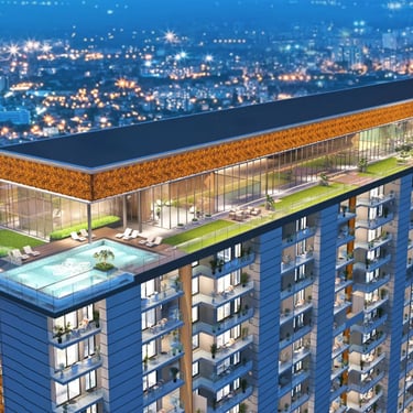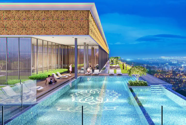 Perched atop the towers, the skyhub provides an elevated experience with an infinity pool, a serene yoga deck, and an exclusive sky lounge, offering breathtaking panoramic views and an atmosphere of refined tranquility.