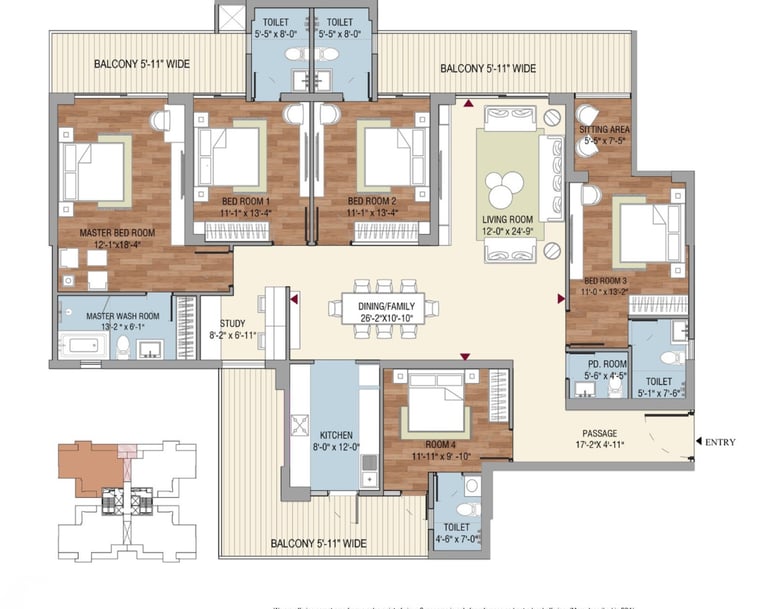 The Tulip Melrose apartments are available in a single layout - 5BHK + Study + Powder Room, with a spacious floor size of 3216 sq. ft. Every residence offers breathtaking views of the Aravalli Hills, bringing natural beauty right to your doorstep. Tulip Melrose promises a lifestyle of sophistication, tranquility, and unparalleled elegance, crafted for those who truly appreciate luxury living.